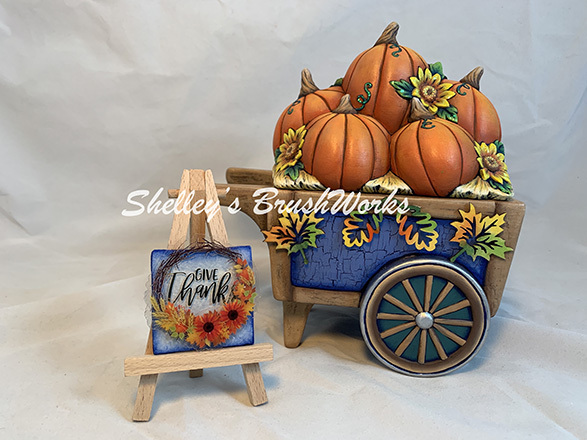 1. Step by step instructions to complete this darling Pumpkin Topper & Cart with demonstrations on each area, including what brushes and paints to use and how to use them